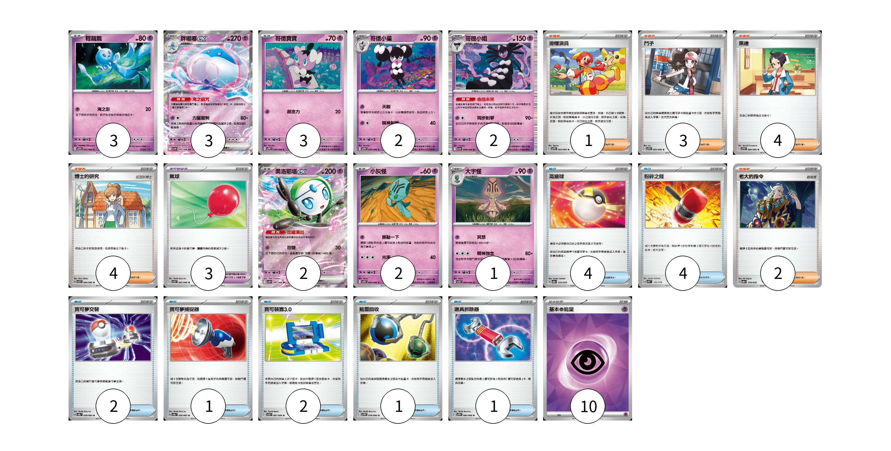 牌組構築方案 以此牌組為基礎新構築牌組 顯示卡面 顯示列表 寶可夢卡(18) 3 3 3 2 2 2 2 1 寶可夢道具(3) 3 物品卡(15) 4 4 2 1 2 1 1 支援者卡(14) 1 3 4 4 2 能量卡(10) 10 寶可夢卡(18) 卡牌名稱 張數 卡牌名稱 張數 輕飄飄 SV11W 041/086 03 胖嘟嘟ex SV11W 042/086 03 哥德寶寶 SV11W 038/086 03 哥德小童 SV11W 039/086 02 哥德小姐 SV11W 040/086 02 美洛耶塔ex SV11B 047/086 02 小灰怪 SV11B 043/086 02 大宇怪 SV11B 044/086 01 寶可夢道具(3) 卡牌名稱 張數 卡牌名稱 張數 氣球 SV11B 082/086 03 物品卡(15) 卡牌名稱 張數 卡牌名稱 張數 高級球 SVOD 012/020 04 粉碎之錘 SVM 131/175 04 寶可夢交替 SV9a 058/063 02 寶可夢捕捉器 SV9a 059/063 01 寶可裝置3.0 SV11B 081/086 02 能量回收 SV11W 079/086 01 道具拆除器 SV11W 080/086 01 支援者卡(14) 卡牌名稱 張數 卡牌名稱 張數 滑稽演員 SV11W 083/086 01 鬥子 SV11W 085/086 03 黑連 SV11W 084/086 04 博士的研究 SV11B 084/086 04 老大的指令 SVOD 019/020 02 能量卡(10) 卡牌名稱 張數 卡牌名稱 張數 基本【超】能量 SVOD PSY 10 以此牌組為基礎新構築牌組 牌組編碼 yQRyQT-zJDpxf-tHPjbg copy 列印牌組單 牌組編碼已複製 分享至SNS