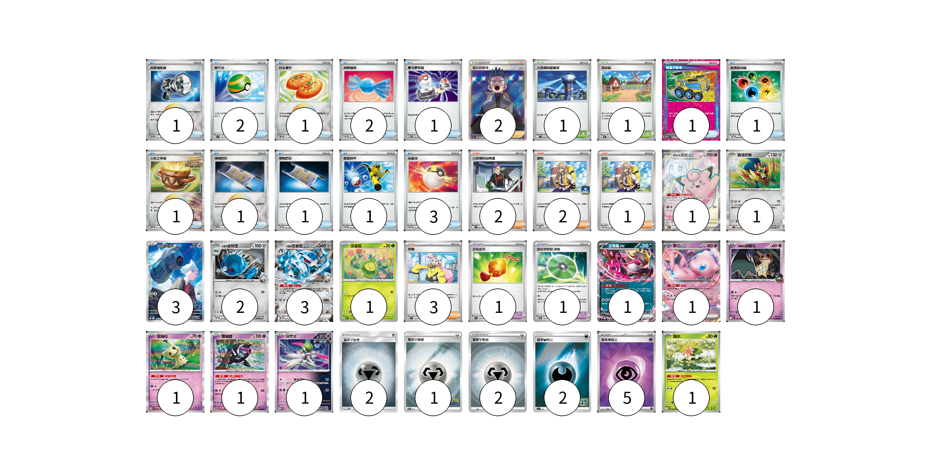 牌組構築方案 以此牌組為基礎新構築牌組 顯示卡面 顯示列表 寶可夢卡(18) 1 1 3 2 3 1 1 1 1 1 1 1 1 寶可夢道具(2) 1 1 物品卡(16) 1 2 1 2 1 1 1 1 1 1 1 3 支援者卡(10) 2 2 2 1 3 競技場卡(2) 1 1 能量卡(12) 2 1 2 2 5 寶可夢卡(18) 卡牌名稱 張數 卡牌名稱 張數 莉莉艾的皮皮ex SV9 115/100 01 藏瑪然特 SV10 075/098 01 <大吾的>鐵啞鈴 SVOD 021/020 03 <大吾的>金屬怪 SVOD 007/020 02 <大吾的>巨金怪ex SVOD 008/020 03 含羞苞 SV8a 001/187 01 吉雉雞ex SVOD 004/020 01 夢幻ex SVK 001/042 01 <火箭隊的>謎擬Q SV10 042/098 01 謎擬Q SV4a 088/190 01 願增猿 SV6 055/101 01 鐵武者 SVHM 008/022 01 謝米 SV9a 006/063 01 寶可夢道具(2) 卡牌名稱 張數 卡牌名稱 張數 勇氣護符 SVM 142/175 01 招式學習器 演進 SV8a 160/187 01 物品卡(16) 卡牌名稱 張數 卡牌名稱 張數 反擊捕捉器 SV8a 139/187 01 巢穴球 SVM 133/175 02 好友寶芬 SV8a 147/187 01 神奇糖果 SVOD 013/020 02 寶可夢交替 SV9a 058/063 01 貴重手推車 SVK 020/042 01 能量回收器 SVOD 009/020 01 大地之容器 SV8a 143/187 01 夜間擔架 SV8a 151/187 01 夜間擔架 SVOM 016/021 01 厲害釣竿 SVOD 010/020 01 高級球 SVOD 012/020 03 支援者卡(10) 卡牌名稱 張數 卡牌名稱 張數 老大的指令(赤日) S12a 250/172 02 火箭隊的拉姆達 SV10 094/098 02 派帕 SV-P 213/SV-P 02 派帕 SVOD 018/020 01 奇樹 SVM 160/175 03 競技場卡(2) 卡牌名稱 張數 卡牌名稱 張數 火箭隊的監視塔 SV10 096/098 01 深缽鎮 SVK 039/042 01 能量卡(12) 卡牌名稱 張數 卡牌名稱 張數 基本鋼能量 AS6D MET 02 基本鋼能量 S10b MET 01 基本【鋼】能量 SI MET 02 基本惡能量 S8a DAR 02 基本【超】能量 SVOD PSY 05 以此牌組為基礎新構築牌組 牌組編碼 yZmCNr-ZWEKcW-WtLpXT copy 列印牌組單 牌組編碼已複製 分享至SNS