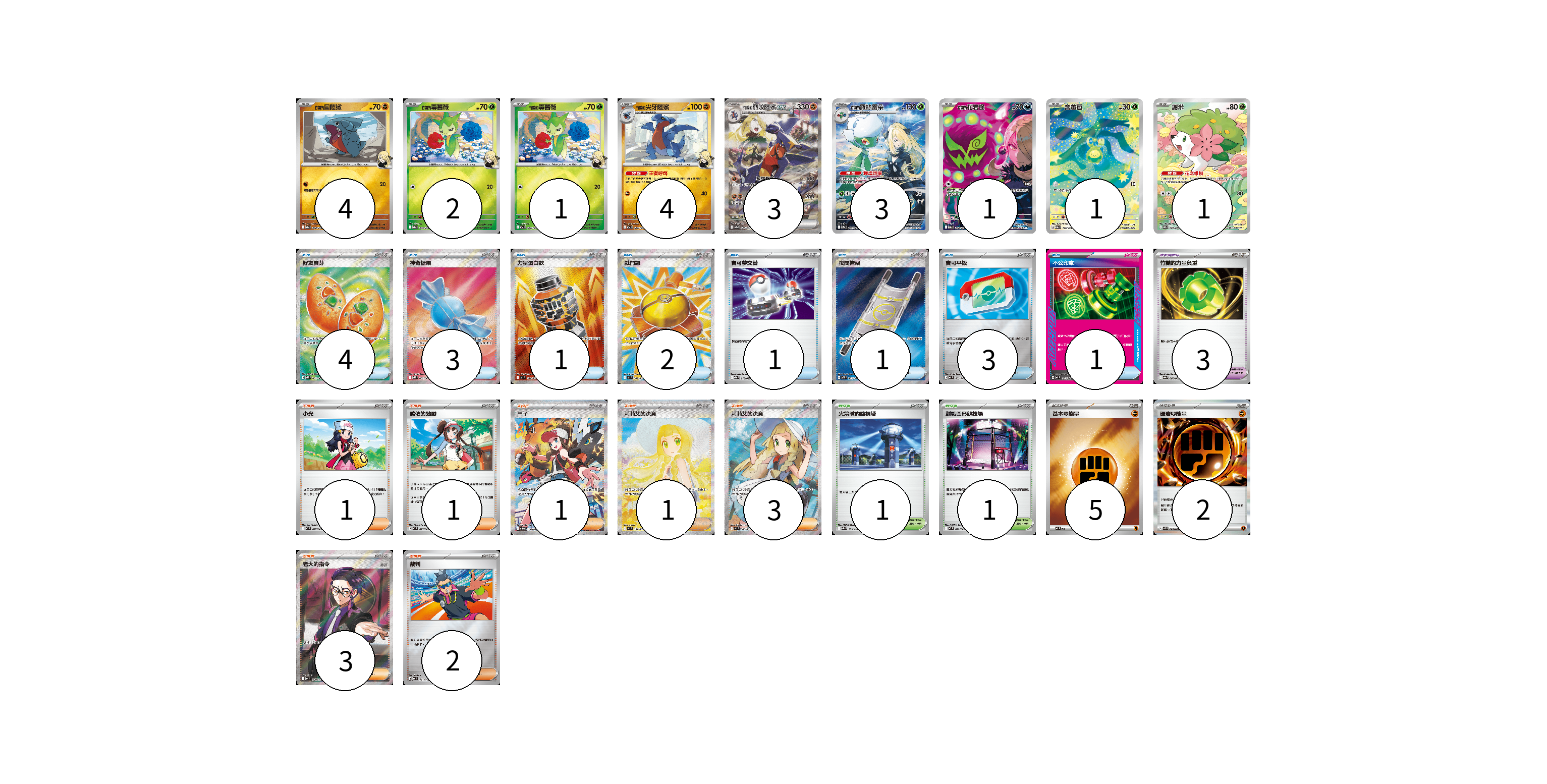 牌組構築方案 以此牌組為基礎新構築牌組 顯示卡面 顯示列表 寶可夢卡(20) 4 2 1 4 3 3 1 1 1 寶可夢道具(3) 3 物品卡(16) 4 3 1 2 1 1 3 1 支援者卡(12) 1 1 1 1 3 3 2 競技場卡(2) 1 1 能量卡(7) 5 2 寶可夢卡(20) 卡牌名稱 張數 卡牌名稱 張數 竹蘭的圓陸鯊 M2a 088/193 04 竹蘭的毒薔薇 M2a 009/193 02 竹蘭的毒薔薇 M2a 009/193 01 竹蘭的尖牙陸鯊 M2a 089/193 04 <竹蘭的>烈咬陸鯊ex SV9a 087/063 03 <竹蘭的>羅絲雷朵 SV9a 065/063 03 <竹蘭的>花岩怪 M2a 208/193 01 含羞苞 M2a 196/193 01 謝米 SV9a 066/063 01 寶可夢道具(3) 卡牌名稱 張數 卡牌名稱 張數 竹蘭的力量負重 SV9a 060/063 03 物品卡(16) 卡牌名稱 張數 卡牌名稱 張數 好友寶芬 M1S 081/063 04 神奇糖果 M1S 082/063 03 力量蛋白飲 M1L 081/063 01 戰鬥鑼 M1L 082/063 02 寶可夢交替 MBG 015/022 01 夜間擔架 M1L 083/063 01 寶可平板 MC 662/742 03 不公印章 MC 633/742 01 支援者卡(12) 卡牌名稱 張數 卡牌名稱 張數 小光 M2 077/080 01 鳴依的勉勵 M3 075/080 01 鬥子 SV11W 173/086 01 莉莉艾的決意 M1L 091/063 01 莉莉艾的決意 M1L 086/063 03 老大的指令(烏羽) MC 760/742 03 裁判 MC 711/742 02 競技場卡(2) 卡牌名稱 張數 卡牌名稱 張數 火箭隊的監視塔 M2a 189/193 01 對戰圓形競技場 M2 079/080 01 能量卡(7) 卡牌名稱 張數 卡牌名稱 張數 基本【鬥】能量 MC FIG 05 硬岩【鬥】能量 M3 080/080 02 以此牌組為基礎新構築牌組 牌組編碼 ytTGlW-cEqsUP-cySuUh copy 列印牌組單 牌組編碼已複製 分享至SNS
