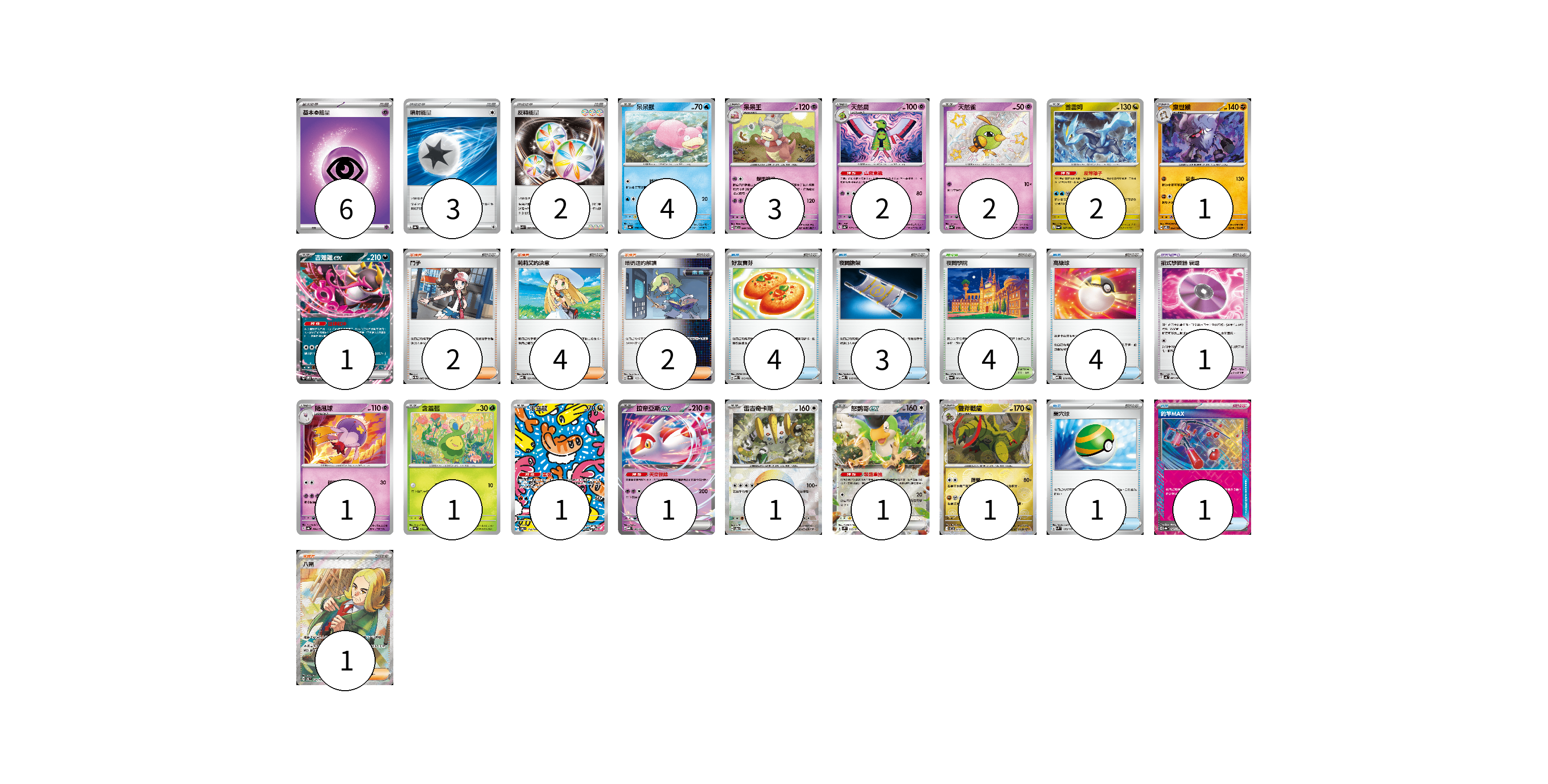 牌組構築方案 以此牌組為基礎新構築牌組 顯示卡面 顯示列表 寶可夢卡(22) 4 3 2 2 2 1 1 1 1 1 1 1 1 1 寶可夢道具(1) 1 物品卡(13) 4 3 4 1 1 支援者卡(9) 2 4 2 1 競技場卡(4) 4 能量卡(11) 6 3 2 寶可夢卡(22) 卡牌名稱 張數 卡牌名稱 張數 呆呆獸 SV4a 036/190 04 呆呆王 SV7 039/102 03 天然鳥 SV4a 079/190 02 天然雀 SV4a 256/190 02 酋雷姆 SV6a 047/064 02 棄世猴 SV8 062/106 01 吉雉雞ex SVOM 009/021 01 隨風球 SV4a 084/190 01 含羞苞 SV8a 001/187 01 米立龍 SV6 112/101 01 拉帝亞斯ex MBD 003/022 01 雷吉奇卡斯 SV8a 132/187 01 怒鸚哥ex SV2P 065/071 01 雙斧戰龍 SV11B 072/086 01 寶可夢道具(1) 卡牌名稱 張數 卡牌名稱 張數 招式學習器 衰退 SV4K 063/066 01 物品卡(13) 卡牌名稱 張數 卡牌名稱 張數 好友寶芬 MBD 013/022 04 夜間擔架 MBD 016/022 03 高級球 MBD 014/022 04 巢穴球 SVM 133/175 01 釣竿MAX SV8a 142/187 01 支援者卡(9) 卡牌名稱 張數 卡牌名稱 張數 鬥子 SV11W 085/086 02 莉莉艾的決意 MBD 021/022 04 暗碼迷的解讀 SV8a 165/187 02 八朔 SV6 124/101 01 競技場卡(4) 卡牌名稱 張數 卡牌名稱 張數 夜間學院 SV6a 064/064 04 能量卡(11) 卡牌名稱 張數 卡牌名稱 張數 基本【超】能量 MBD PSY 06 噴射能量 SV8a 185/187 03 反轉能量 SVK 041/042 02 以此牌組為基礎新構築牌組 牌組編碼 zdLVUp-NPWUqN-OTZPsi copy 列印牌組單 牌組編碼已複製 分享至SNS