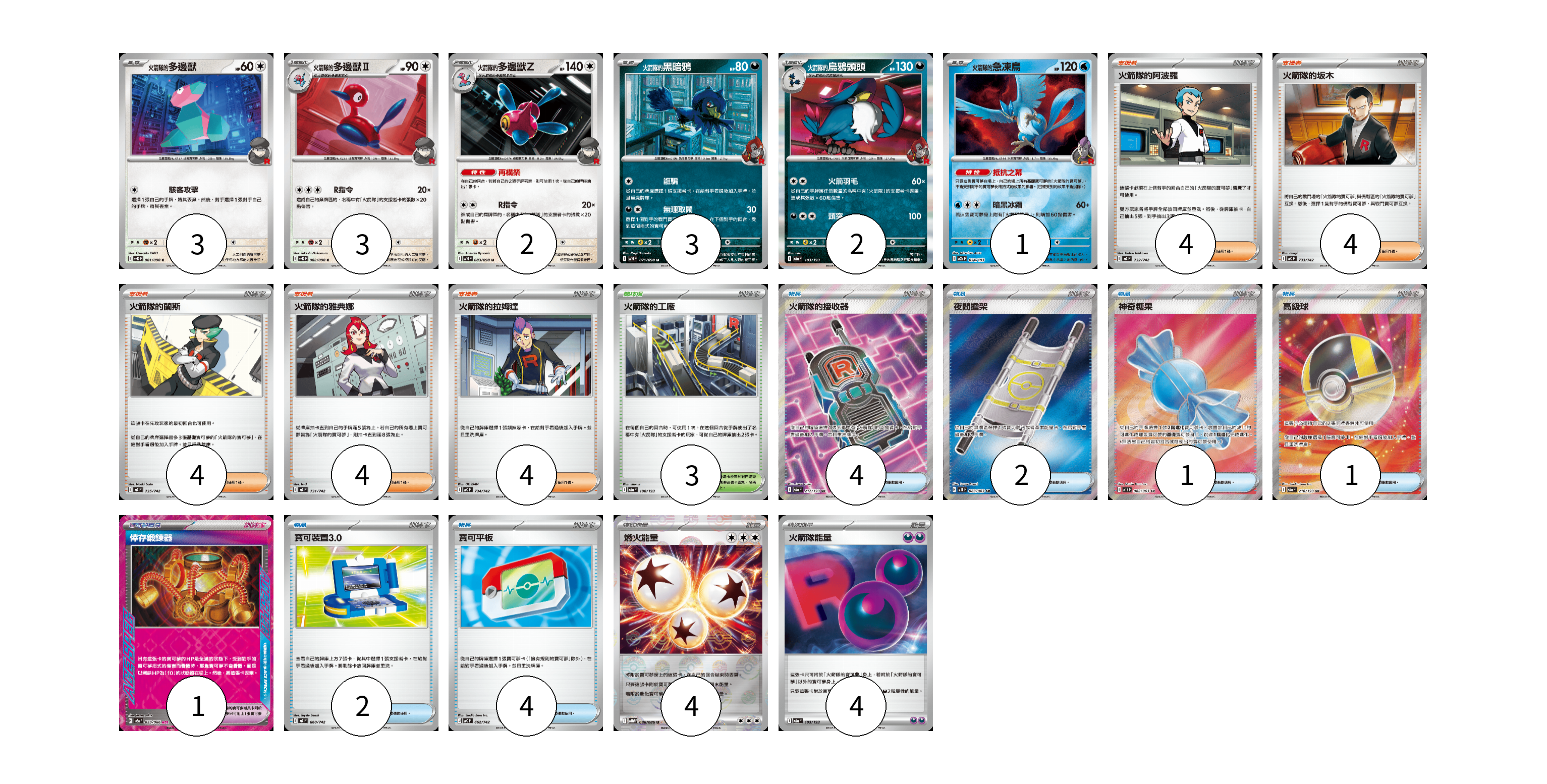 卡牌名稱 張數