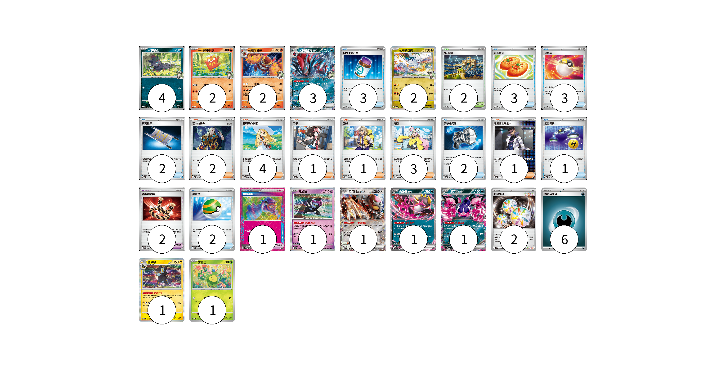 牌組構築方案 以此牌組為基礎新構築牌組 顯示卡面 顯示列表 寶可夢卡(19) 4 2 2 3 2 1 1 1 1 1 1 寶可夢道具(3) 2 1 物品卡(16) 3 3 3 2 2 1 2 支援者卡(12) 2 4 1 1 3 1 競技場卡(2) 2 能量卡(8) 2 6 寶可夢卡(19) 卡牌名稱 張數 卡牌名稱 張數 N的索羅亞 SV9 060/100 04 N的火紅不倒翁 SV9 015/100 02 N的達摩狒狒 SV9 016/100 02 N的索羅亞克ex SV9 061/100 03 N的萊希拉姆 SV9 074/100 02 願增猿 SV6 055/101 01 月月熊 赫月ex SV8a 134/187 01 吉雉雞ex SVOD 004/020 01 桃歹郎ex SV6a 039/064 01 倫琴貓 SV2D 021/071 01 含羞苞 SV8a 001/187 01 寶可夢道具(3) 卡牌名稱 張數 卡牌名稱 張數 不服輸頭帶 SVTL 016/021 02 英雄斗篷 SV5M 064/071 01 物品卡(16) 卡牌名稱 張數 卡牌名稱 張數 N的PP提升劑 SV9 089/100 03 好友寶芬 MBD 013/022 03 高級球 MBD 014/022 03 夜間擔架 MBD 016/022 02 反擊捕捉器 SV8a 139/187 02 能量轉移 SVM 127/175 01 巢穴球 SVTR 013/021 02 支援者卡(12) 卡牌名稱 張數 卡牌名稱 張數 老大的指令 MBD 020/022 02 莉莉艾的決意 MBD 021/022 04 鬥子 SV11W 085/086 01 派帕 SVOD 018/020 01 奇樹 SVOD 016/020 03 弗圖博士的劇本 SV8a 175/187 01 競技場卡(2) 卡牌名稱 張數 卡牌名稱 張數 N的城堡 SV9 097/100 02 能量卡(8) 卡牌名稱 張數 卡牌名稱 張數 反轉能量 SV4a 189/190 02 基本【惡】能量 SVB DAR 06 以此牌組為基礎新構築牌組 牌組編碼 zyMsvB-JXUysN-lBGfGa copy 列印牌組單 牌組編碼已複製 分享至SNS