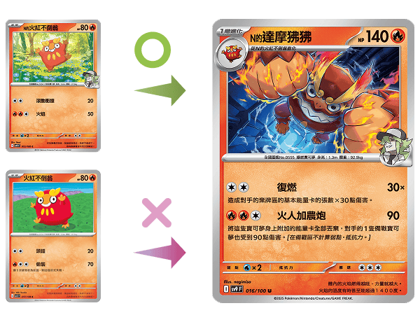 (例:N的達摩狒狒(SV9)可以從N的火紅不倒翁(SV9)進化。但不可以從火紅不倒翁(SV3)進化。)