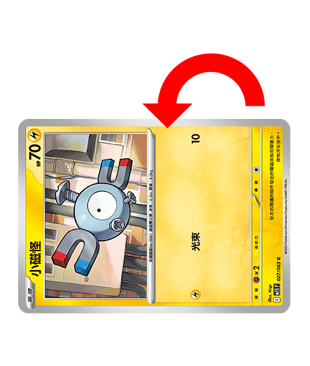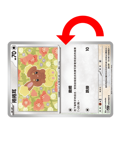 - 在「灼傷」的寶可夢身上放置2個「10」的傷害指示物,然後擲1次硬幣,若為正面則將該寶可夢從「灼傷」中恢復。